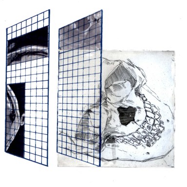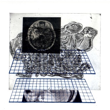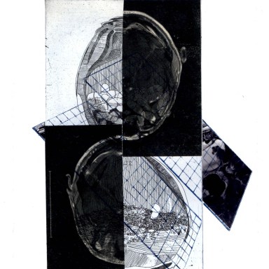 Hard-ground Etching, Screen-print, Chine-collé, and Graphite on Arches En-Tout-Cas Paper.